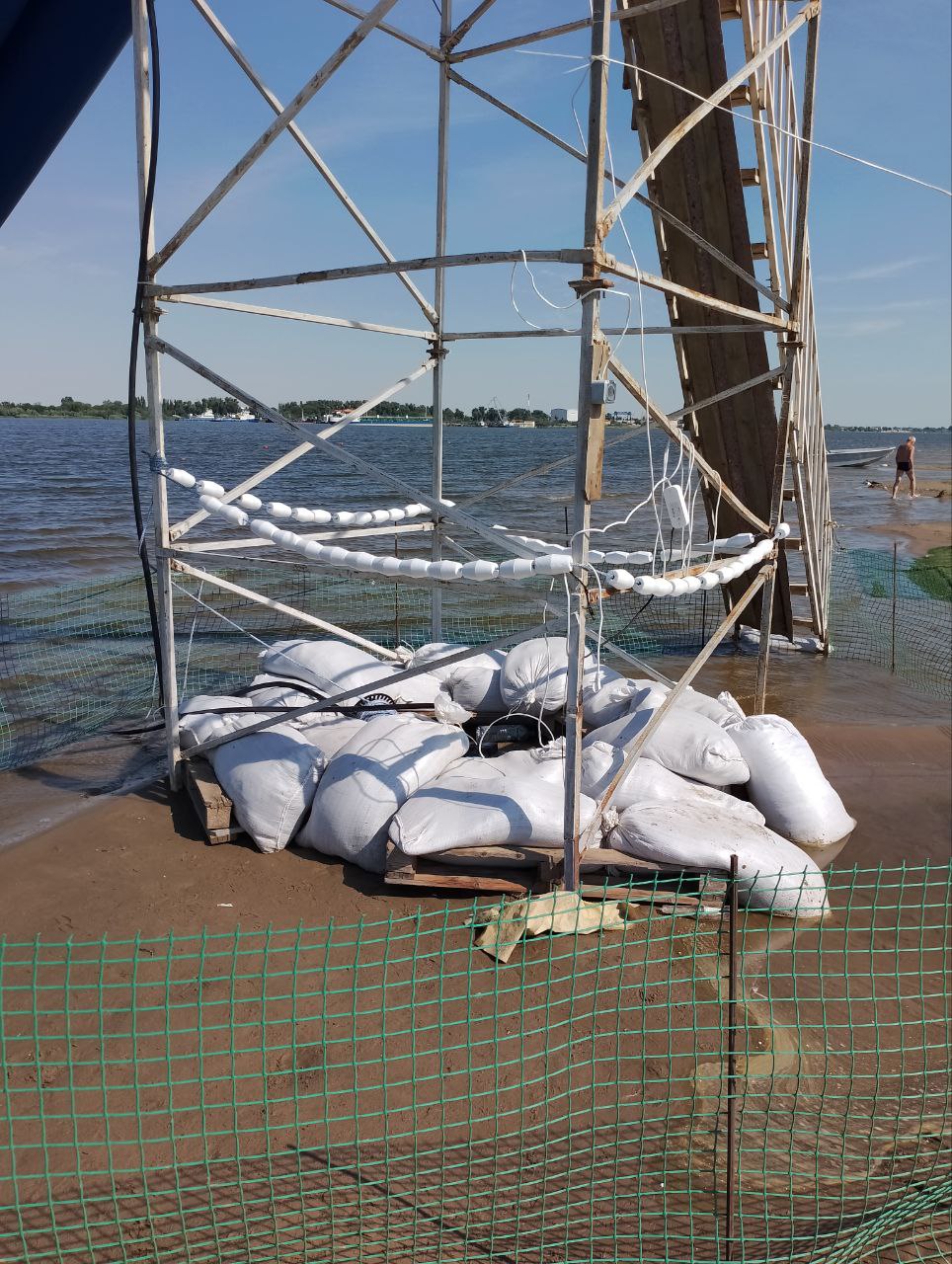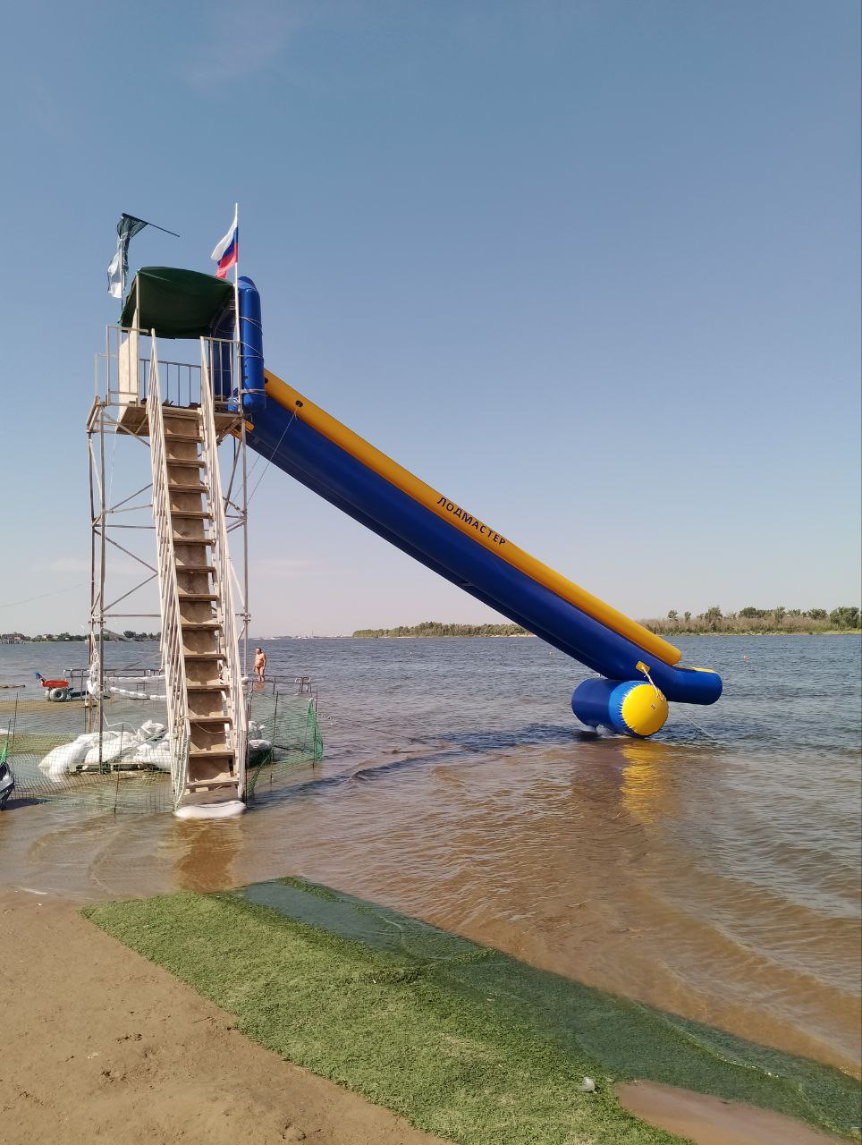 В результате такого наблюдения на территории пляжа, расположенного в Приволжском районе, выявлен факт установки незарегистрированного водного немеханизированного аттракциона, эксплуатация которого осуществляется с грубейшими нарушениями законодательства в сфере аттракционной техники: